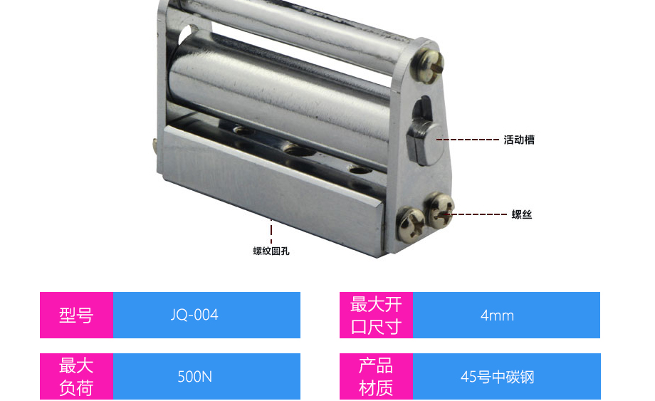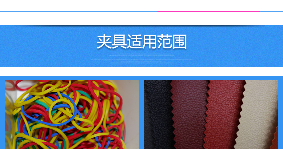 产品型号:JQ-004 品牌:剑 乔 用途:布料夹具适用范围:布料、纸类、毛料、纤维、皮革、橡胶等材料的拉力、破坏力、延伸力测试。