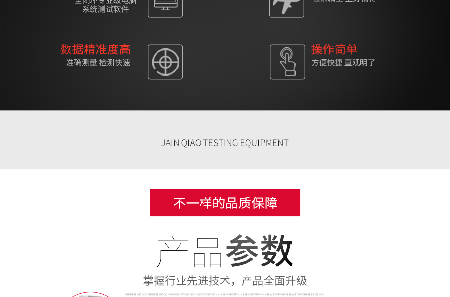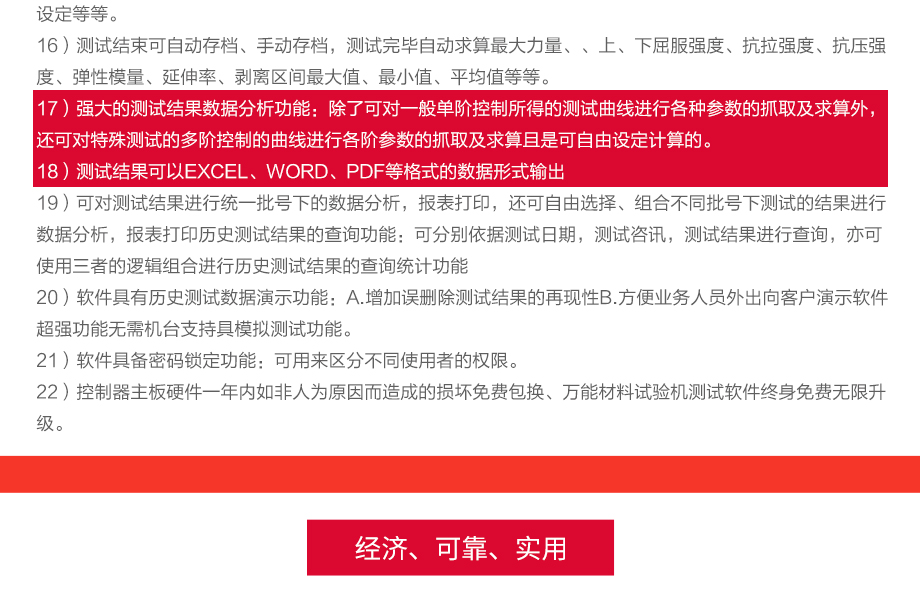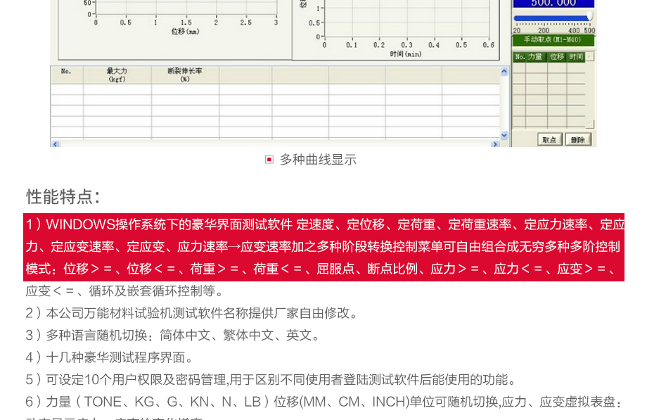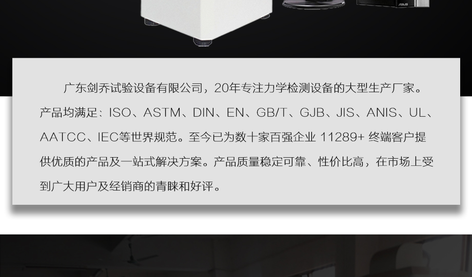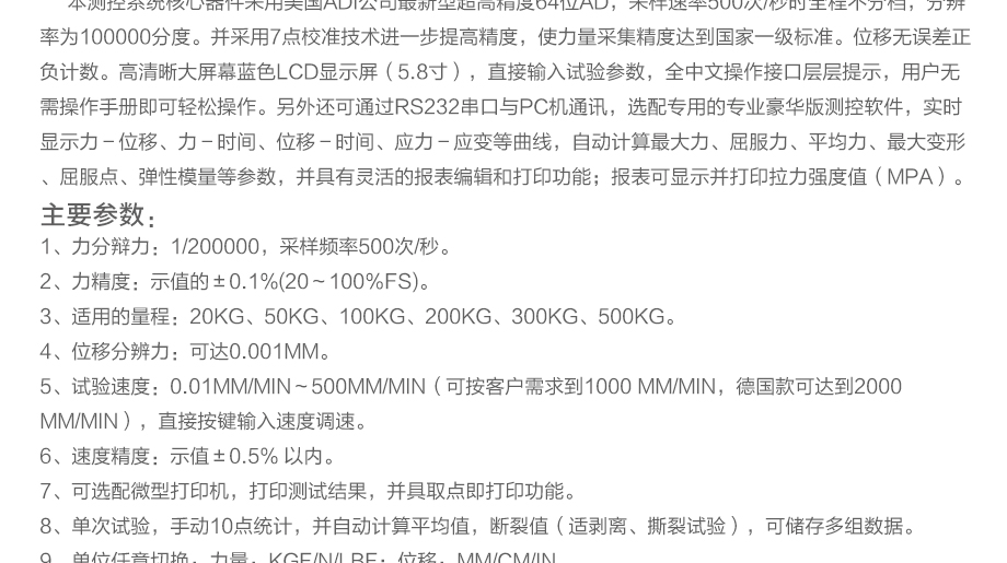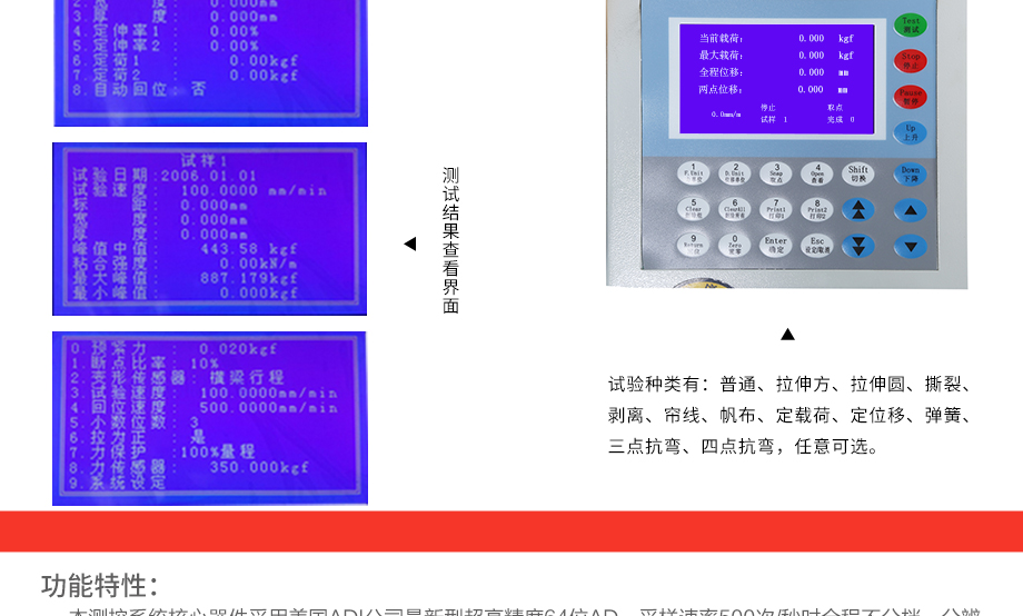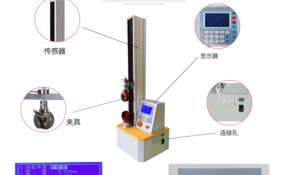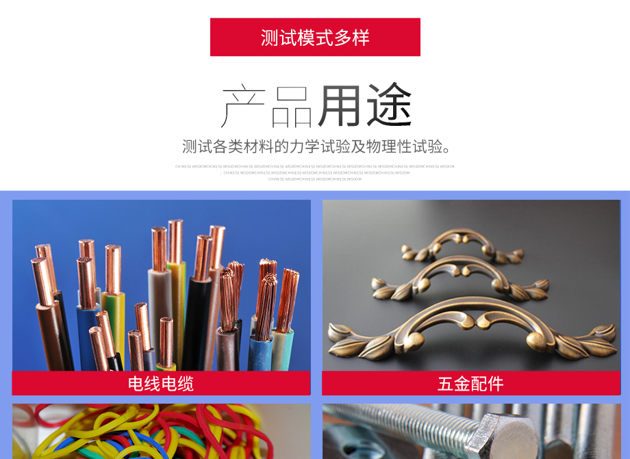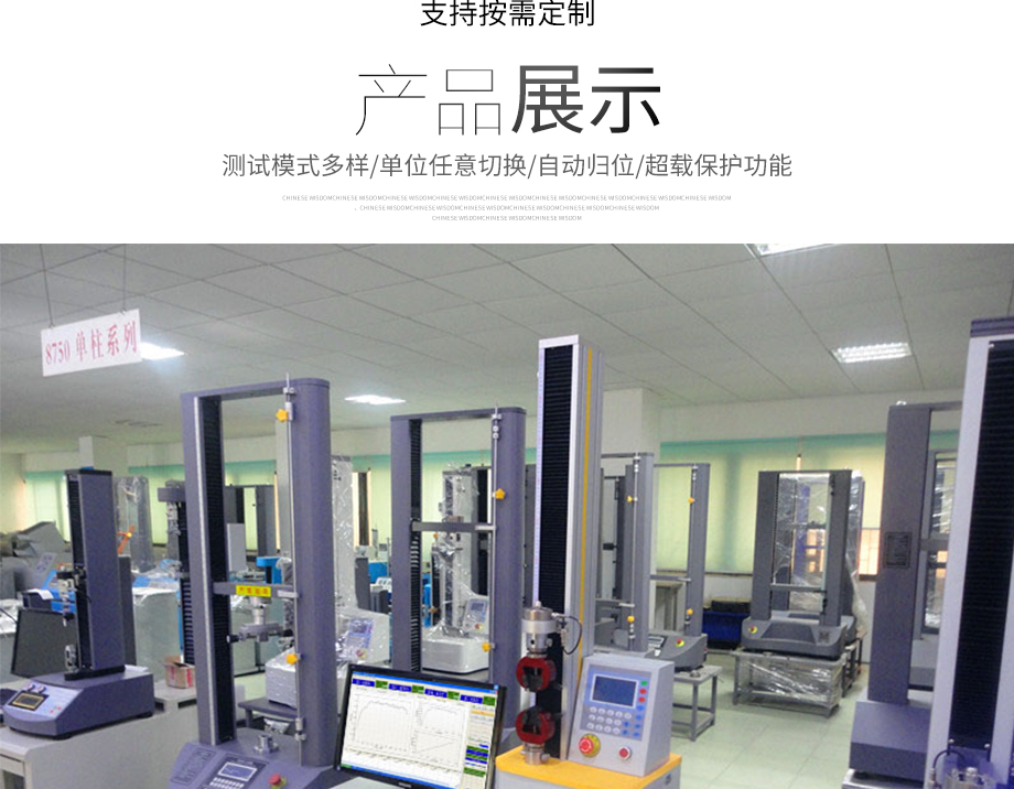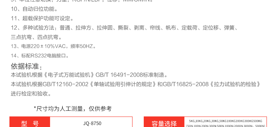 产品型号:JQ-8750 品牌:剑 乔 用途:本系列机广泛用于各类五金、金属、塑胶、橡胶料、纸品、包装、鞋类、皮革、服装、纺织、建材、绝缘体、电线、电缆、端子等各类材料。测试其拉伸、撕裂、剥离、抗压、弯曲、抗剪切、定